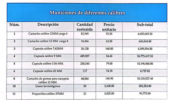 El informe levantado a la fecha señala que existe un significativo faltante en las municiones: