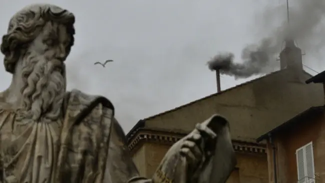Mientras el humo negro se disipa en el aire, fieles y curiosos se van retirando y continúa el flujo de peregrinos que, entre rezos y portando cruces, avanzan por unos carriles habilitados expresamente para quienes quieren atravesar la Puerta Santa de San Pedro y ganar así el Jubileo.