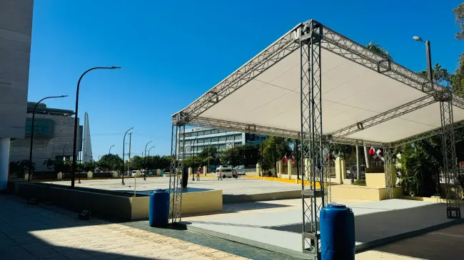 Para la ocasión, empleados del Senado y de la Cámara de Diputados avanzan en la instalación de la tarima desde donde el presidente y la vicepresidenta de la República recibirán los honores.