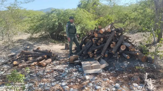 En el sector El Córbano, provincia Elías Piña, fue intervenido un horno activo que tenía capacidad para producir cerca de 14 sacos de carbón vegetal, mientras que en el Distrito Municipal Pedro Corto, provincia San Juan, se confiscaron 30 postes de la especie Bayahonda, cortados sin autorización ambiental.