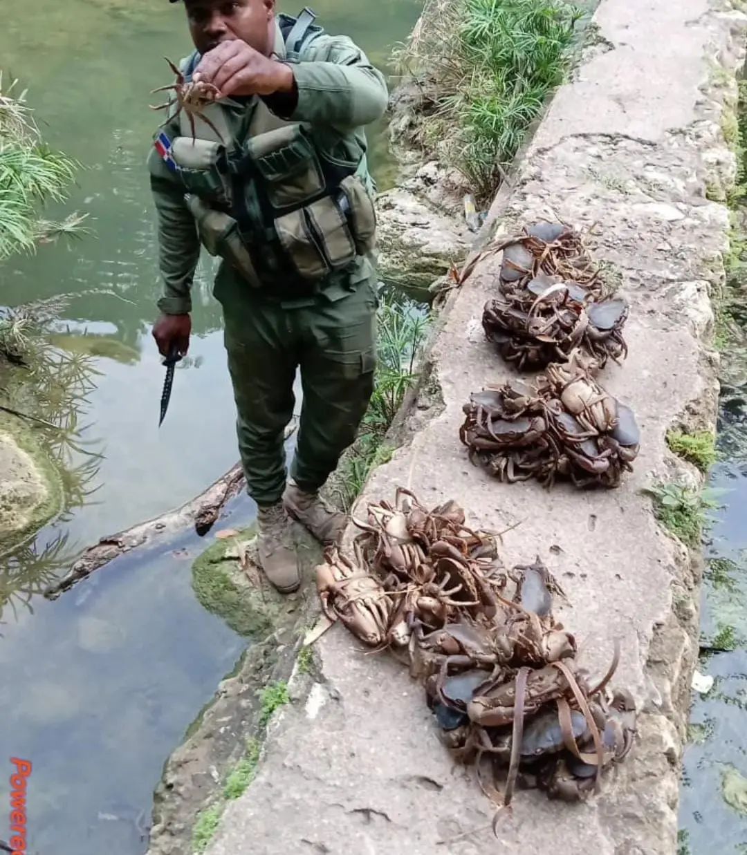 Durante un recorrido rutinario de inspección y control en el sector Villa Hermosa, provincia La Romana, miembros del SENPA sorprendieron a un individuo mientras comercializaba 48 unidades de jaibas de río, especie actualmente en período de veda. Esta práctica constituye una violación a lo establecido por la Ley 64-00 sobre Medio Ambiente y Recursos Naturales.