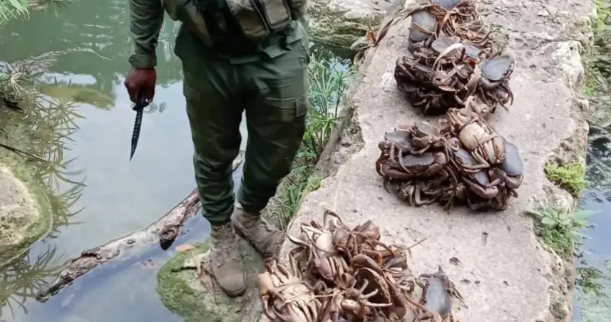 Las jaibas decomisadas fueron liberadas en Río Dulce, cerca del lugar del decomiso, para preservar su hábitat natural.