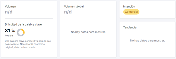 2. Dificultad de palabra clave: No todas las palabras clave son igual de competitivas. Algunas tienen mucha competencia, lo que significa que muchos sitios están intentando posicionarse para esa palabra. Si la dificultad es alta, podría ser más complicado y costoso clasificar tu sitio por esa palabra.
