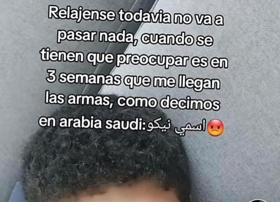 “Relájense, todavía no va a pasar nada, cuando se tienen que preocupar es en 3 semanas que me llegan las armas”, escribió en una publicación acompañado de un texto en árabe.