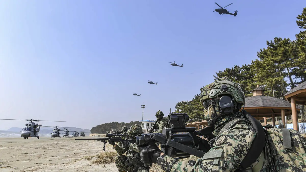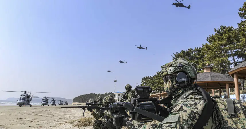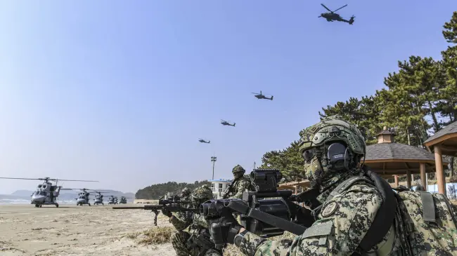Las maniobras tuvieron lugar el viernes alrededor de las islas de Baengnyeong y Yeonpyeong, y en ellas participaron las fuerzas de maniobra rápida de los marines, el buque de desembarco de la Armada (LST-II), el helicóptero MUH-1 Marineon y el Korean Assault), según detalló Defensa.