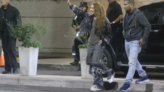 Allí la esperaba un grupo de fans con carteles y camisetas con la cara de la cantante. A pesar de la lluvia, Shakira se acercó a saludarlos con una sonrisa.
