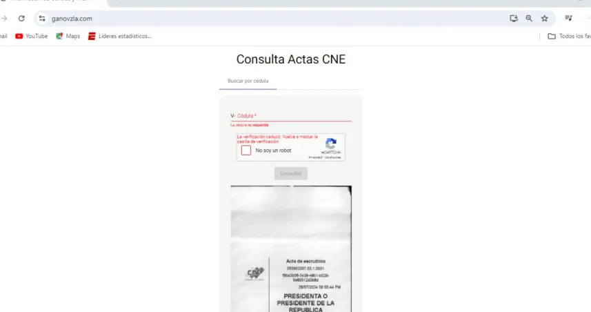 Si tienes cédula venezolana, en esta página puedes verificar los resultados de las actas electorales