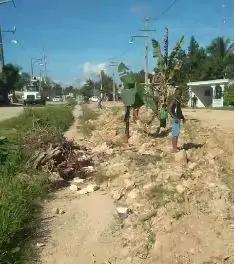 Siembran de plátanos calle en Brisas del Este en protesta por su mal estado