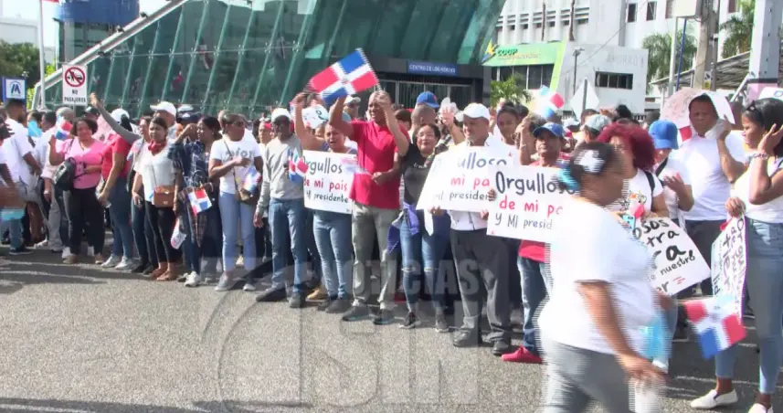 Los grupos de personas con carteles que expresan orgullo patrio y la reelección de Luis Abinader comenzaron a llegar después de las ocho de la mañana para ver al mandatario durante su trayecto hacia el congreso nacional.