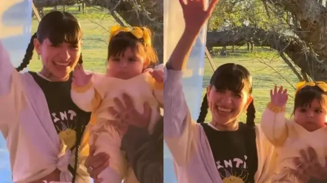 La celebración fue al aire libre y disfrutada por la pequeña y Cazzu, quienes se vistieron a juego: de blanco y amarillo.