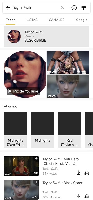1- Escribe el nombre del video musical en el buscador de la app.