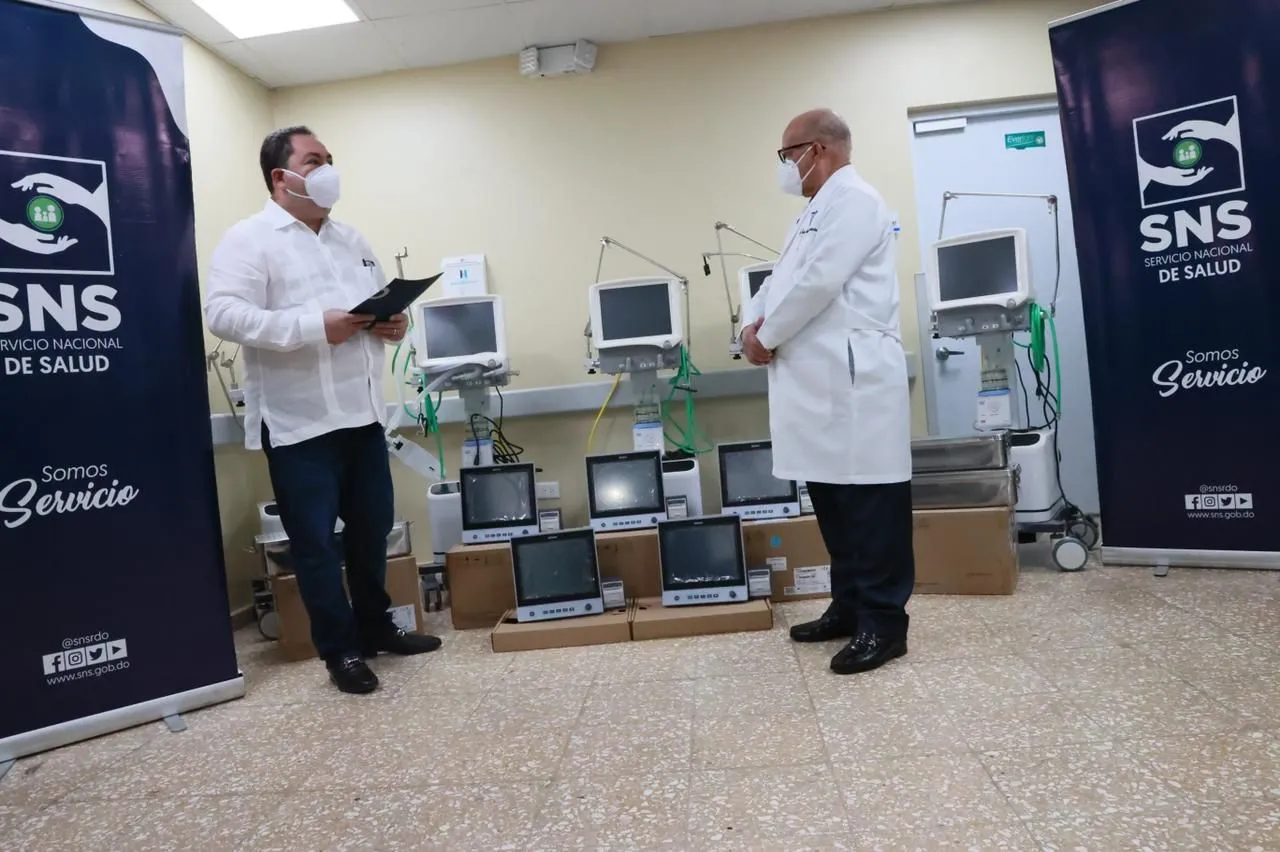 Como parte del fortalecimiento de la cartera de servicios del Hospital Félix María Goico, el director ejecutivo del SNS entregó a ese centro RD$8,648,219.04 en equipos, que incluyó cinco monitores de signos vitales, cinco ventiladores de adultos y pediátricos, un set instrumental de ortopedia y uno de cirugía mayor.