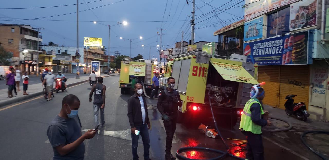 Con la intervención de 3 unidades del Cuerpo de Bomberos, fue sofocado el incendio de una tienda en la avenida San Vicente de Paul del municipio Santo Domingo Este, la noche del pasado sábado, sin registrar víctimas.