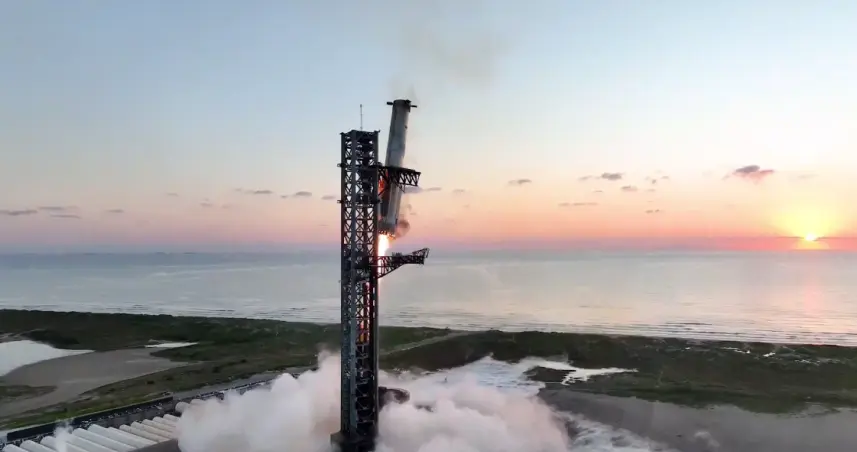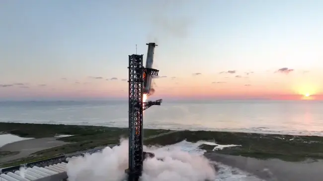 El cohete comenzó su ascenso sin problemas, con el booster y la nave separándose dos minutos y 45 segundos después del despegue. Posteriormente, el booster Super Heavy inició su regreso controlado a la plataforma. En los momentos finales, los motores Raptor ralentizaron la nave desde velocidades de miles de millas por hora hasta una velocidad controlada, permitiendo que las llamas naranjas envolvieran el cohete mientras se colocaba con precisión en los brazos mecánicos.