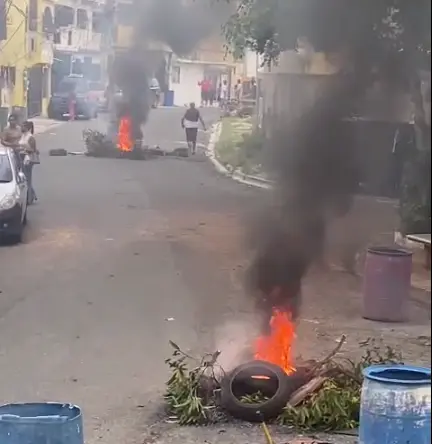 Santo Domingo.– Santo Domingo. Con encendido de gomas, así protestaron este jueves los comunitarios del sector Las Caobas en Santo Domingo Oeste, en demanda del arreglo del servicio eléctrico.