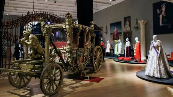 De la réplica del majestuoso carruaje encargado por el rey Jorge III en 1760 a la entrada del número 10 más famoso de Londres, el de Downing Street, pasando por cuadros y vestidos que ambientan el reinado de Isabel II (1926-2022), más de 450 artículos están a la espera de encontrar un nuevo hogar.