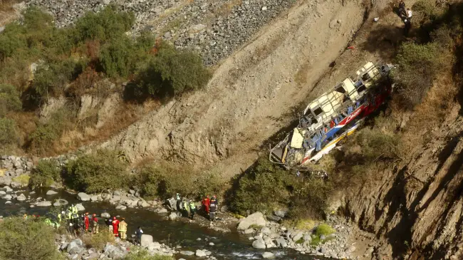 Suben a 29 los muertos en autobús que se estrelló y cayó a barranco en Perú