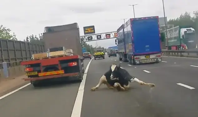 ¡Suceso! Dos vacas caen de un camión en medio de una carretera en Inglaterra