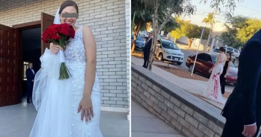 A través de un hilo de X (antes Twitter) se hizo viral la historia de una novia quien al caminar al altar junto a su padre, dos sujetos vestidos de cholos se le acercaron para arrojarle un bote de pintura roja a su vestido.