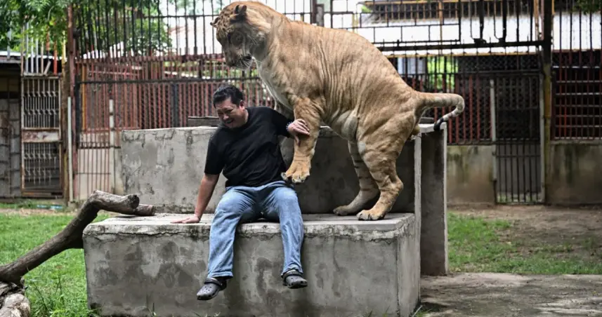 Chiang Mai.- Detrás de su garaje, en una calle como tantas otras de Chiang Mai, en el norte de Tailandia, Tharnuwarht Plengkemratch instaló dos leonas blancas y un híbrido de león y tigre de 200 kilos llamado "Big George", sus mascotas.