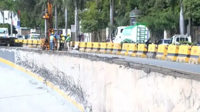 En el tramo que colapsó la pared en el túnel de la 27 de febrero se observó una maquinaria y poco personal en el lugar, mientras que otras intersecciones de la obra vial, al igual que el elevado circulaban vehículos de costumbre.
