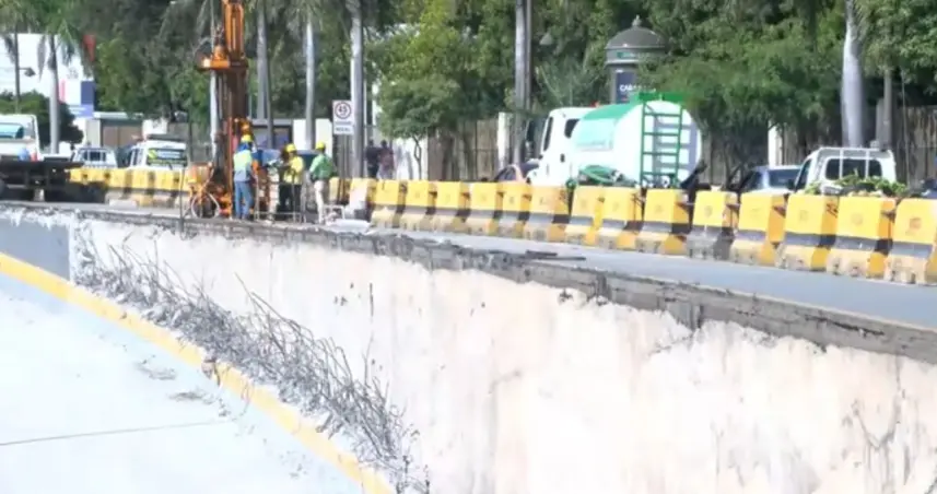 En el tramo que colapsó la pared en el túnel de la 27 de febrero se observó una maquinaria y poco personal en el lugar.