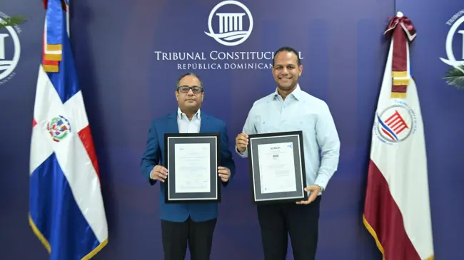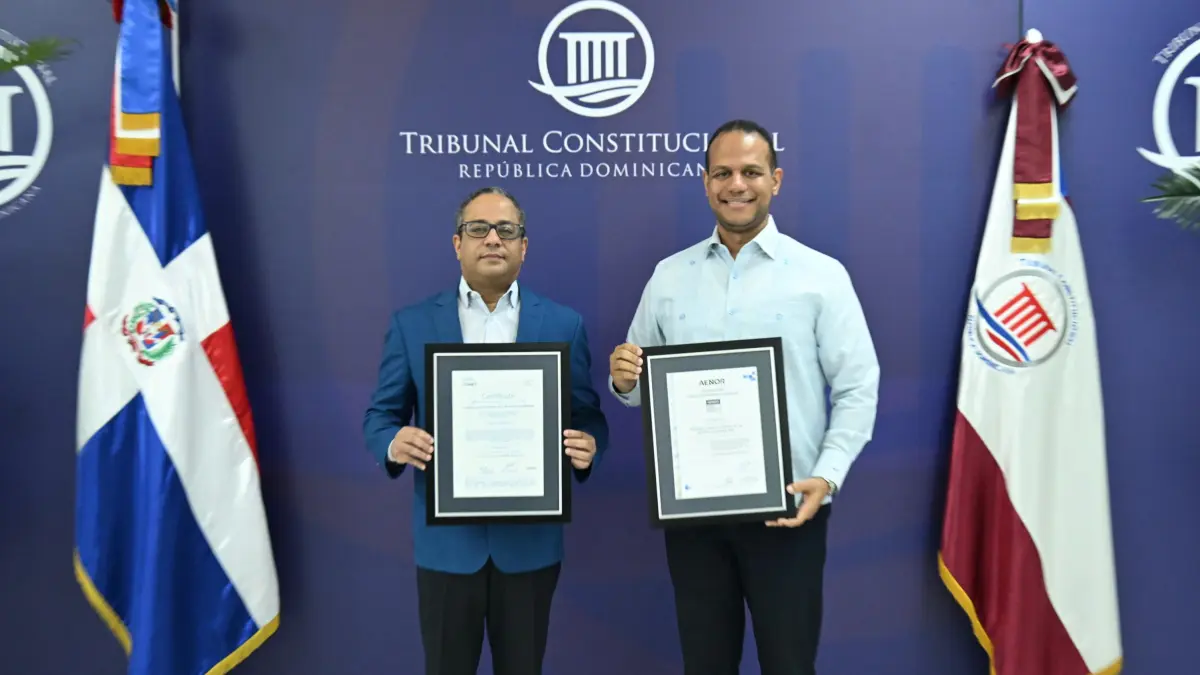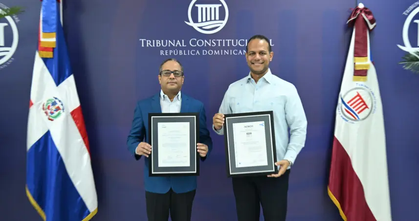 Los certificados fueron recibidos por el presidente del TC, magistrado Napoleón Estévez Lavandier, de manos del director de Aenor en la República Dominicana, Ariel Espejo Combes
