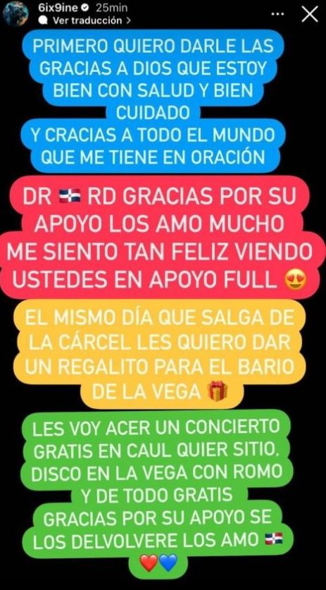 El rapero expresó, "primero quiero darle las gracias a Dios que estoy bien con salud y bien cuidado y gracias a todo el mundo que me tiene en oración, RD gracias por su apoyo los quiero mucho..."