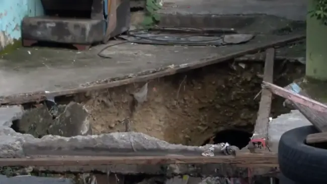 “Ese hoyo tiene mucho tiempo ahí, cada rato tiene que estar sacando los vehículos porque se les va porque al estar lloviendo no se ve. Estos son días de juicios con ese hoyo aparte del mal olor que sale”, declaró una de las comunitarias.