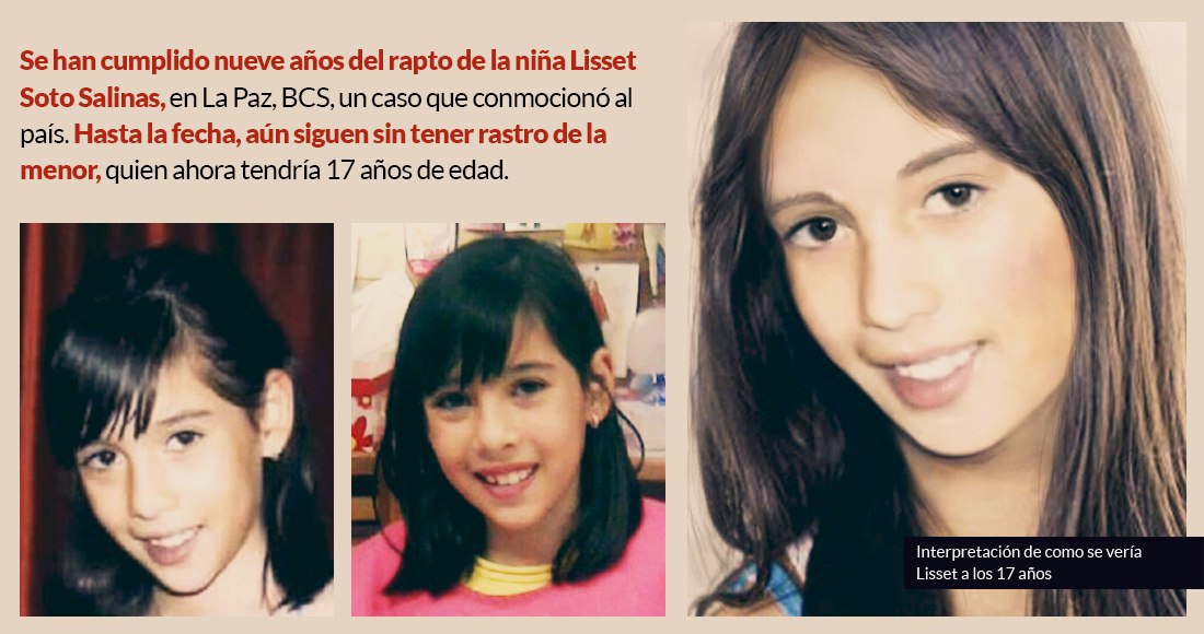 Lisset Soto Salinas está por cumplir su mayoría de edad. ¿En dónde está? No se sabe ¿En qué condiciones? Tampoco. Hace apenas unos días se cumplieron nueve años de su rapto en La Paz, Baja California Sur. A la fecha, sus padres y familiares siguen sin tener rastro o datos que puedan dar una pista de su paradero.