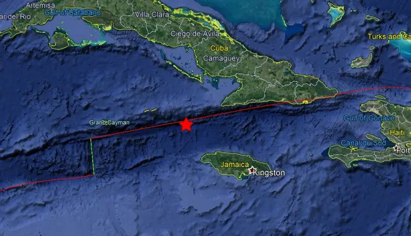 El terremoto ocurrido al NW de Jamaica y al oeste-suroeste de Santiago de Cuba, en la zona de contacto entre la placa tectónica de Norteamérica y la placa tectónica del Caribe, ha sido corregido a M7.7, con posibilidad de tsunami en la zona por magnitud, epicentro e hipocentro.