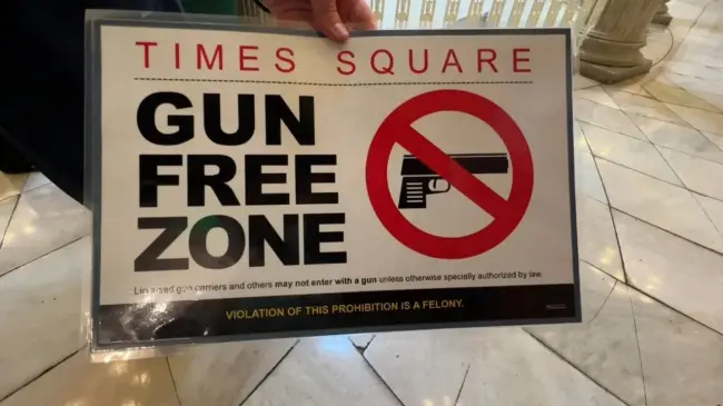 Los letreros se colocarán en cada entrada a Times Square informando que es una zona libre de armas y que "los portadores con licencia y otros no pueden ingresar con un arma de fuego a menos que la ley los autorice especialmente", recordó el alcalde. Los que violen la ley pueden enfrentar cárcel.