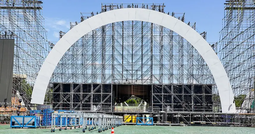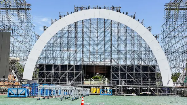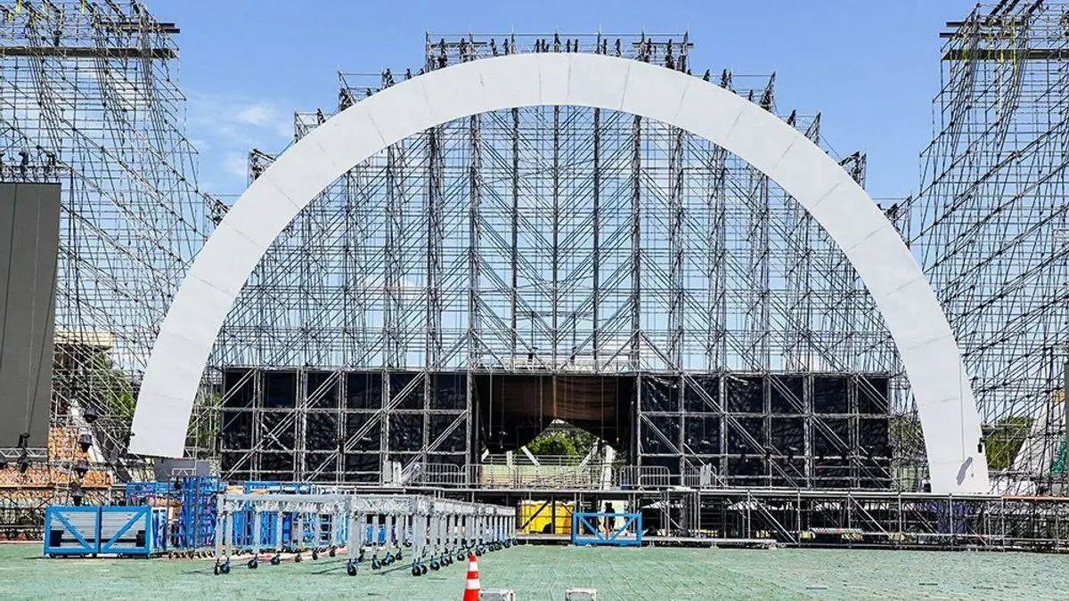El productor añadió que en las próximas horas se realizarán las pruebas de sonido, pantallas y luces para dejar todo listo para el montaje, el cual será disfrutado por más de cien mil personas a lo largo de dos días.