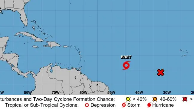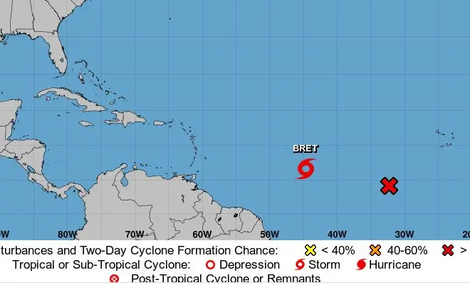 Tormenta Bret se mueve sobre el Atlántico; lluvias en la tarde y día caluroso
