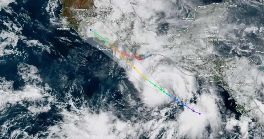 Durante la noche de este martes, el ciclón dejará lluvias puntuales intensas (de 75 a 150 milímetros) en Guerrero, Oaxaca, Chiapas y el sur de Veracruz.