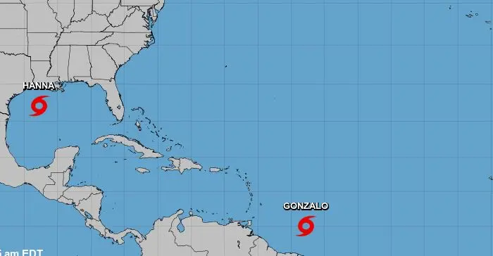 MIAMI.- La tormenta tropical Hanna avanza por el Golfo de México hacia la costa de Texas (EE.UU.), donde se prevé tocará tierra el sábado, mientras que en el Atlántico Gonzalo podría convertirse en huracán en su camino hacia las islas Barlovento, informó este viernes el Centro Nacional de Huracanes (NHC, en inglés).