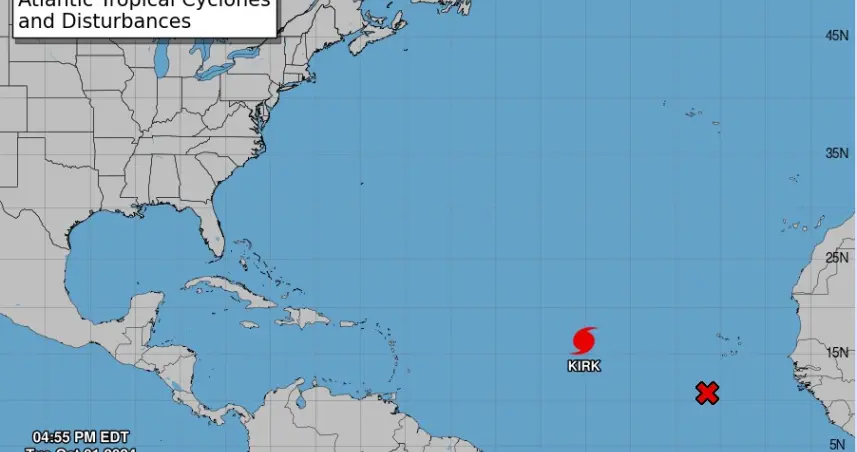 La tormenta tropical Kirk se convirtió en huracán, y aunque no representa un peligro para el país, por el momento, el Instituto Dominicano de Meteorología la mantiene bajo vigilancia.