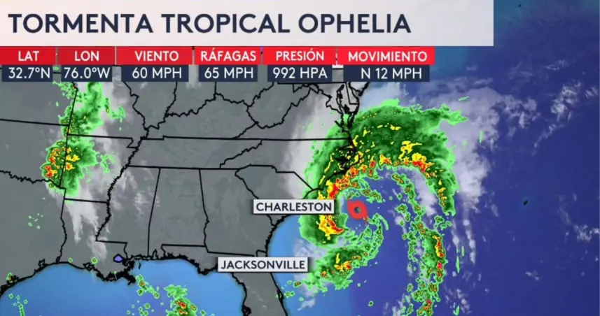 Tormenta tropical Ophelia se fortalece y se aproxima a Carolina del Norte