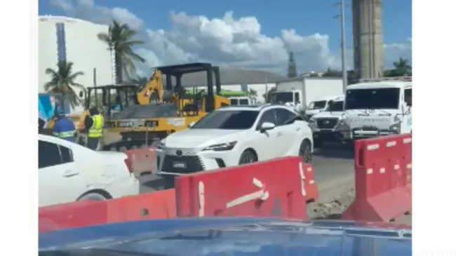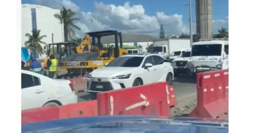 Trabajos de equipos pesados provocan taponamiento en el Kilómetro 9 de la Autopista Duarte