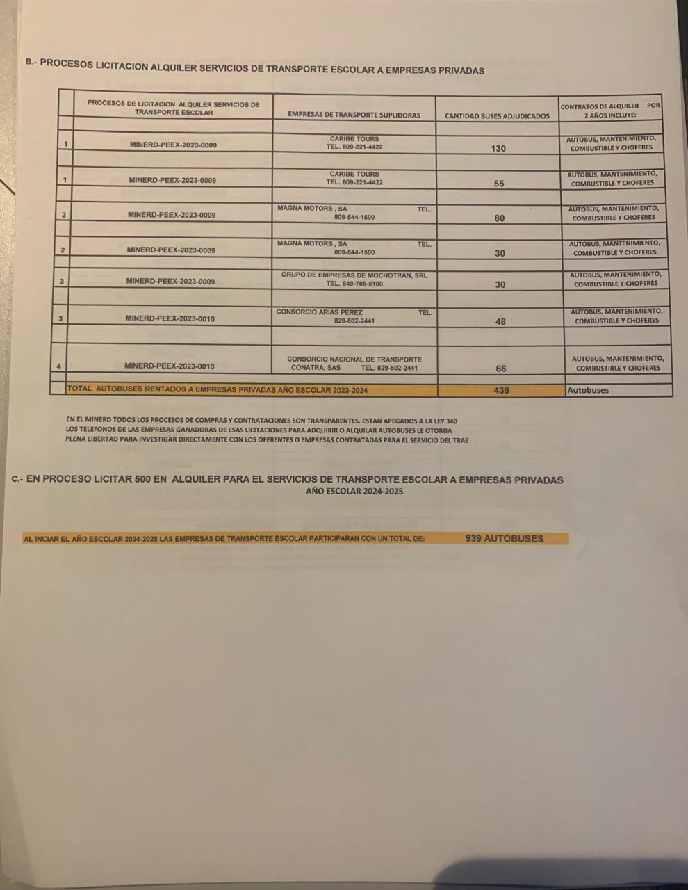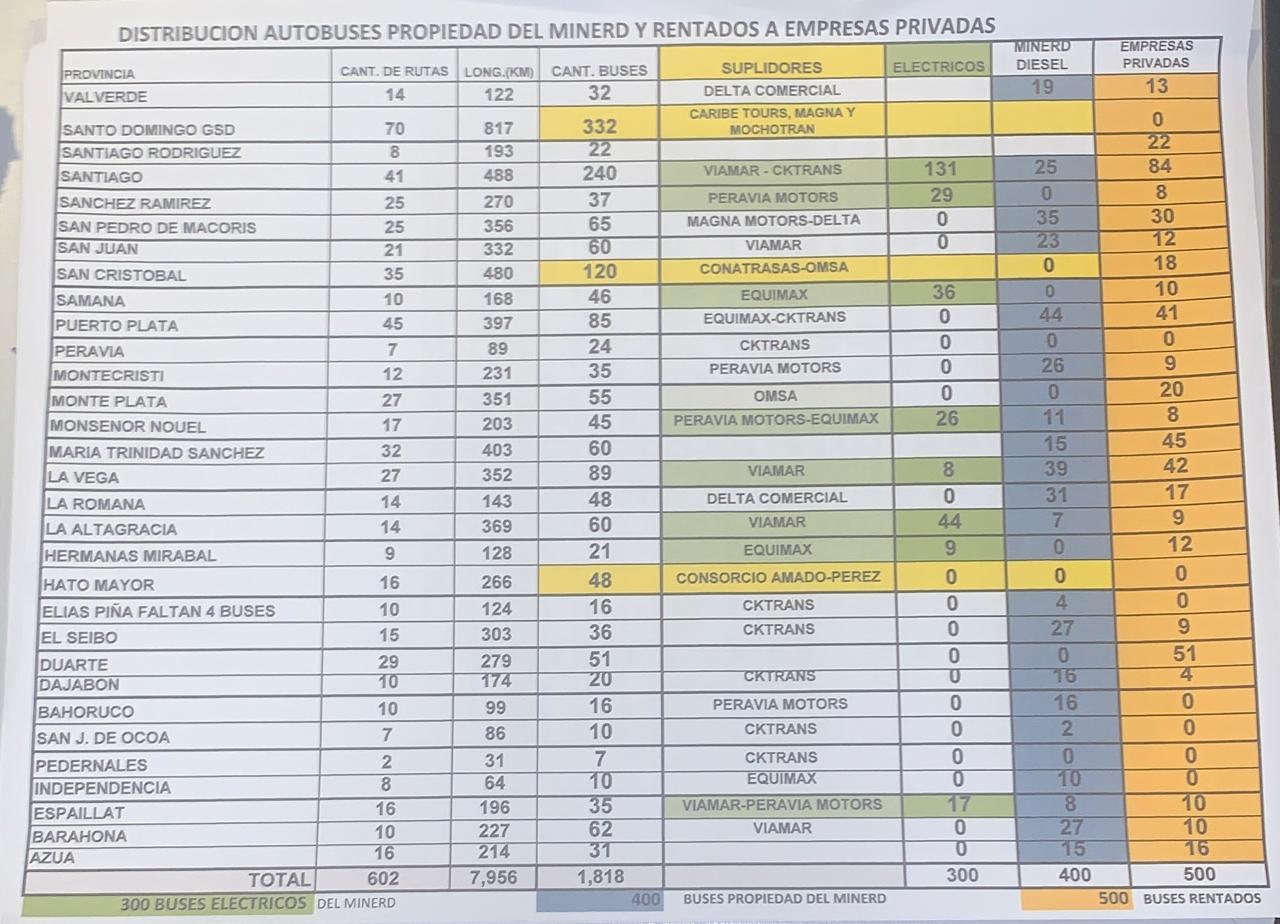 Distribución autobuses propiedad del MINERD y rentados a empresas privadas: