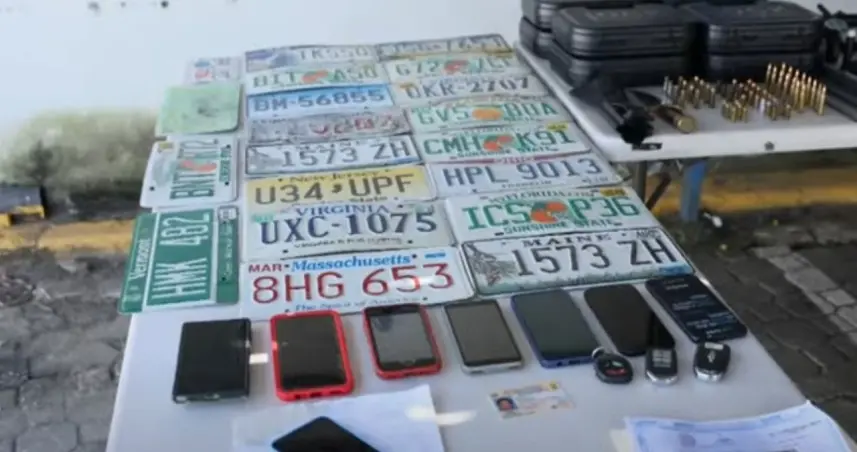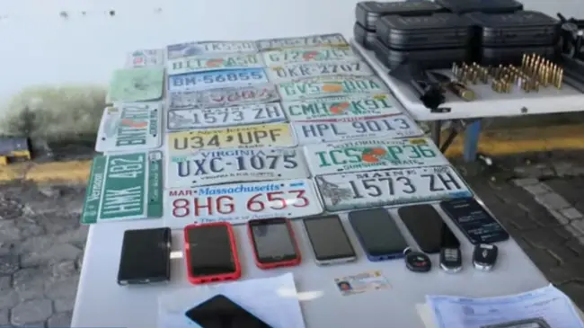 Once pistolas, seis fusiles, municiones, una camioneta, dos motocicletas, celulares y radios de comunicación, entre otras evidencias, incautó la Dirección Central de Inteligencia en operativos en Baní y Santo Domingo Oeste. Las autoridades detuvieron a Yerson Figuereo y al agente Wellington Santos.