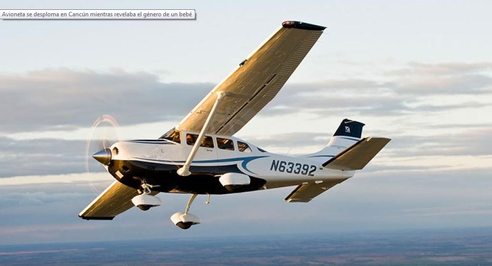 REDACCIÓN INTERNACIONAL.– Una avioneta que hacía maniobras para revelar el sexo de un bebé se desplomó en la Laguna Nichupté, ubicada en Cancún, Quintana Roo. Hasta el momento se reportan dos víctimas letales.