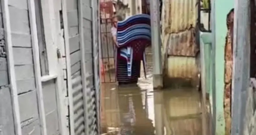 Santo Domingo.– Santo Domingo.- Tras pasar una noche en vela por los fuertes aguaceros, comunitarios de la rivera del río Ozama desde ya comienzan a sacar parte de sus ajuares de sus viviendas.