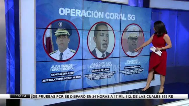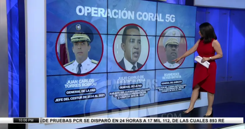 En cuanto al expediente ya judicializado que se desprendió de la Operación Coral, y que precede a la etapa procesal abierta con la Coral 5G, el Ministerio Público presentó pruebas que llevaron a la Oficina Judicial de Servicios de Atención Permanente del Distrito Nacional a imponer, el 10 de mayo de este año, 18 meses de prisión preventiva en contra del mayor general Adán Cáceres Silvestre, exdirector del Cuerpo de Seguridad Presidencial (Cusep), y Rossy Guzmán Sánchez (la Pastora), así como del cabo policial Tanner Antonio Flete Guzmán, el coronel policial Rafael Núñez de Aza y el sargento de la Armada Alejandro José Montero Cruz.
