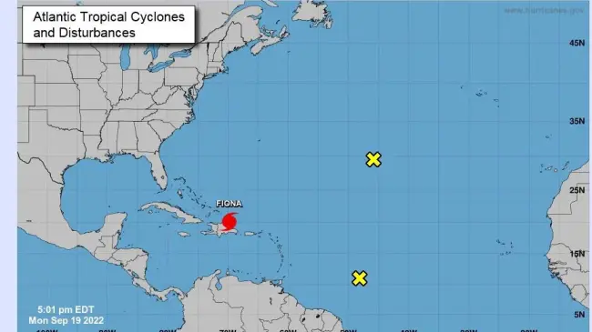 En la trayectoria pronosticada por el NHC, con sede en Miami (Florida), el centro de Fiona "se moverá sobre el suroeste Atlántico esta tarde y se prevé que el centro pase cerca o hacia el este de las Islas Turcas y Caicos" el martes.