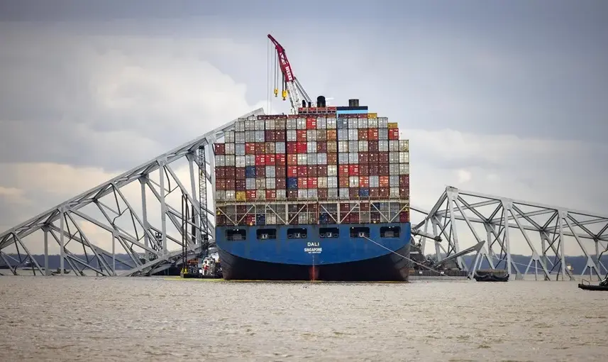 El carguero DALI, una nave de 300 metros de eslora y con bandera de Singapur, salía del puerto de Baltimore con destino a Sri Lanka cuando chocó en la madrugada del 26 de marzo de 2024 con uno de los pilares en el segmento central del puente sobre el río Patapsco.