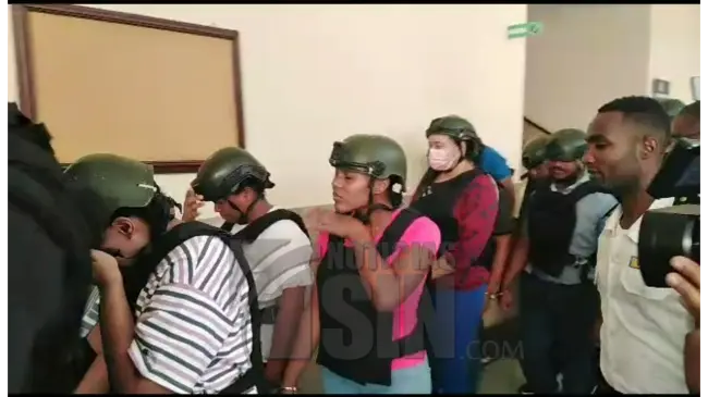 Santo Domingo.– SANTO DOMINGO.- Trasladan a la sala de audiencias a los 12 implicados en la Operación Gavilán para el conocimiento de la medida de coerción por su presunta participación en una red que habría eliminado más de ocho mil antecedentes penales.