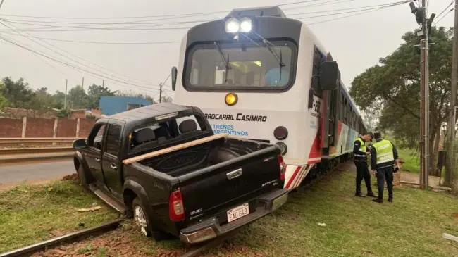 La unidad impactó contra una camioneta conducida por personal de la Armada que "se interpuso en la vía férrea, en el acceso a la Base Naval" de Encarnación (ciudad ubicada a unos 377 kilómetros de Asunción), indicó la firma Ferrocarril Internacional Casimiro, prestadora del servicio.