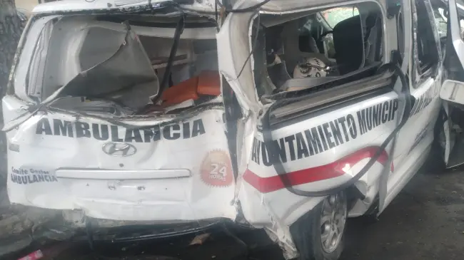 A través de un vídeo enviado a nuestra redacción se puede ver la ambulancia destrozada y personal del cuerpo de bomberos en la escena del accidente.