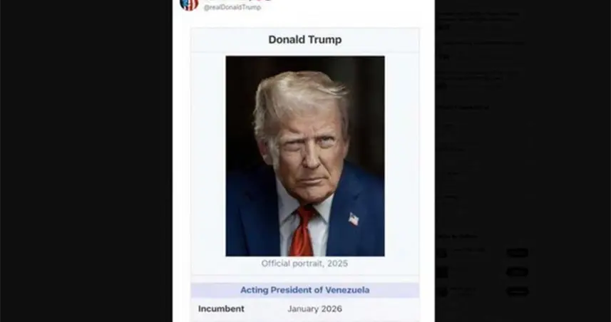 Trump difundió en Truth Social una imagen falsa que lo presenta como presidente interino de Venezuela en 2026.